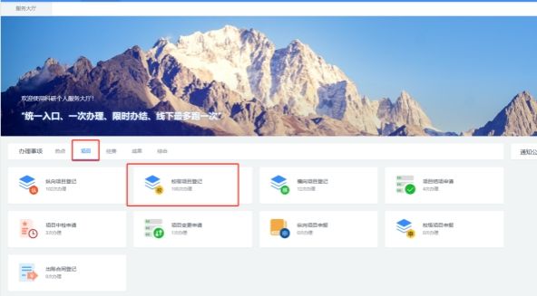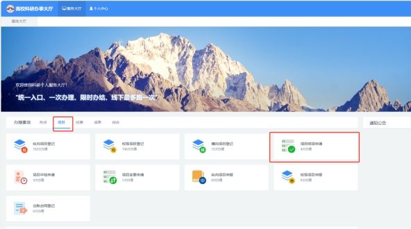 若进入科研管理系统之后,项目列表中没有要结项的校级课题,需先进行登记,审核通过后即可显示,再行申请结项。