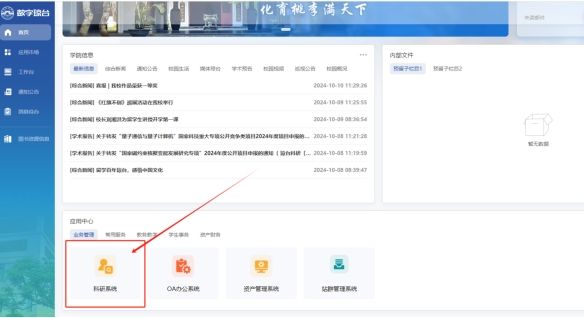 校内登陆直接点击学校官网下方的“科研管理系统”,
