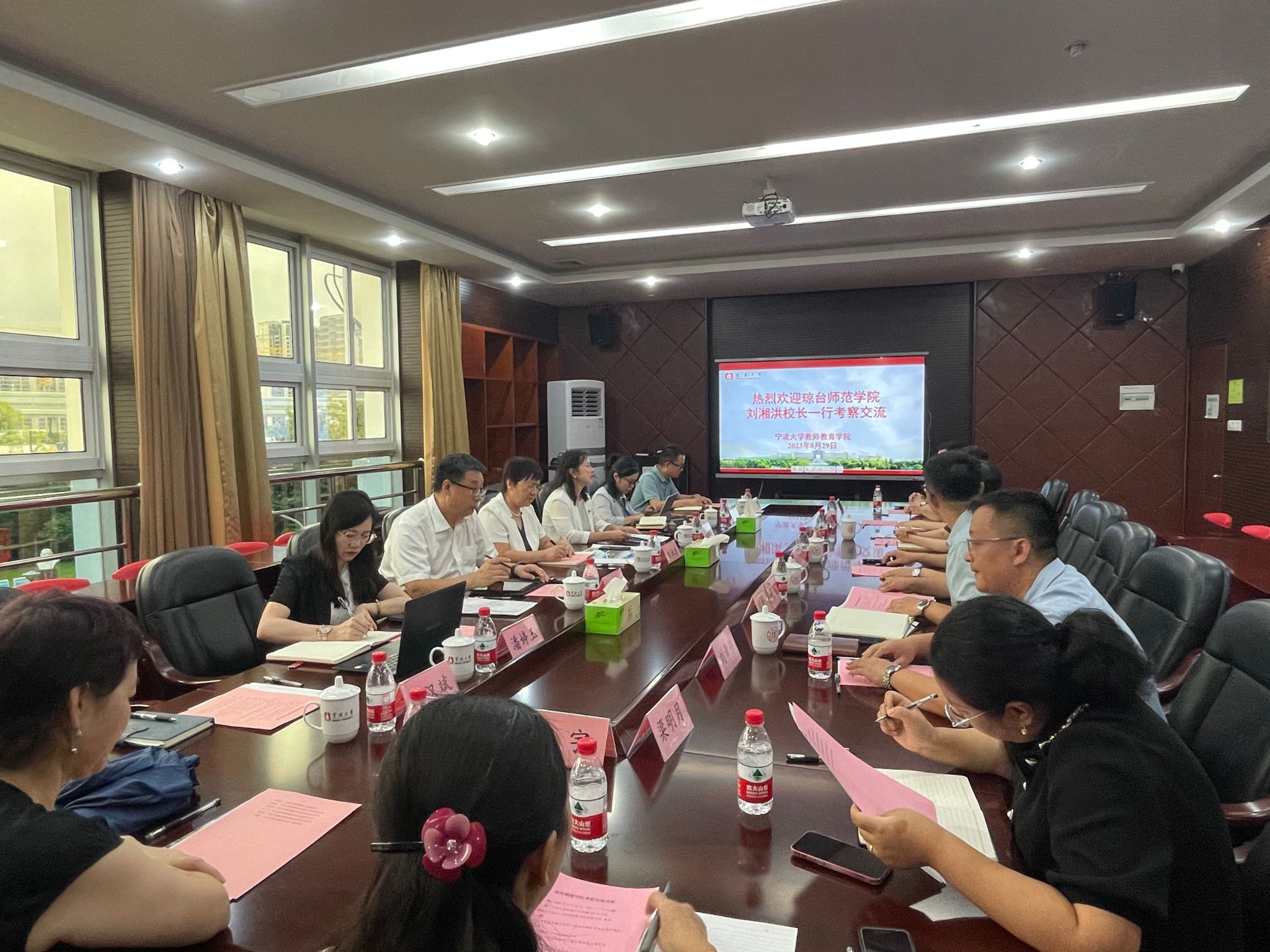 29日下午,校长刘湘洪一行到访宁波大学教师教育学院并与宁波大学教师教育学院党委书记张林、院长张宝歌等领导就教育学硕士点领域布置、小学教育方向设置、心理学科建设等问题展开深入讨论,并围绕汇聚学科队伍、搭建学科平台、推出学科成果、拓展学科资源、加强学科管理、弥补申硕短板、完善申报材料等方面内容进行了研讨交流。