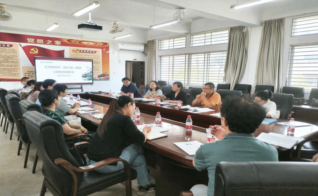 为扎实推进学习贯彻习近平新时代中国特色社会主义思想主题教育走深走实,作为我校主题教育实践调研的特色内容,6月1日上午,校长刘湘洪带领调研团队到文学院,就文学院学科(硕士点)建设情况开展主题教育专题调研。韩君华副校长主持会议。